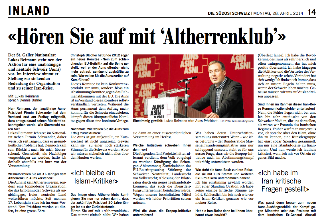 Ein Interview, erschienen am 28. April 2014 in der Südostschweiz sowie der Nordwestschweiz / Aargauer Zeitung.