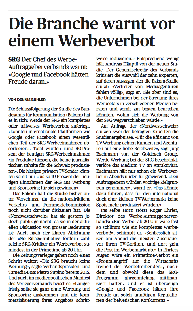 * In der Printversion heisst der Direktor des Werbe-Auftraggeberverbandes fälschlicherweise Roger statt Roland Ehrler. Ich entschuldige mich für dieses Versehen.