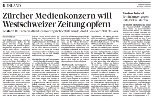 Zürcher Medienkonzern will Westschweizer Zeitung opfern