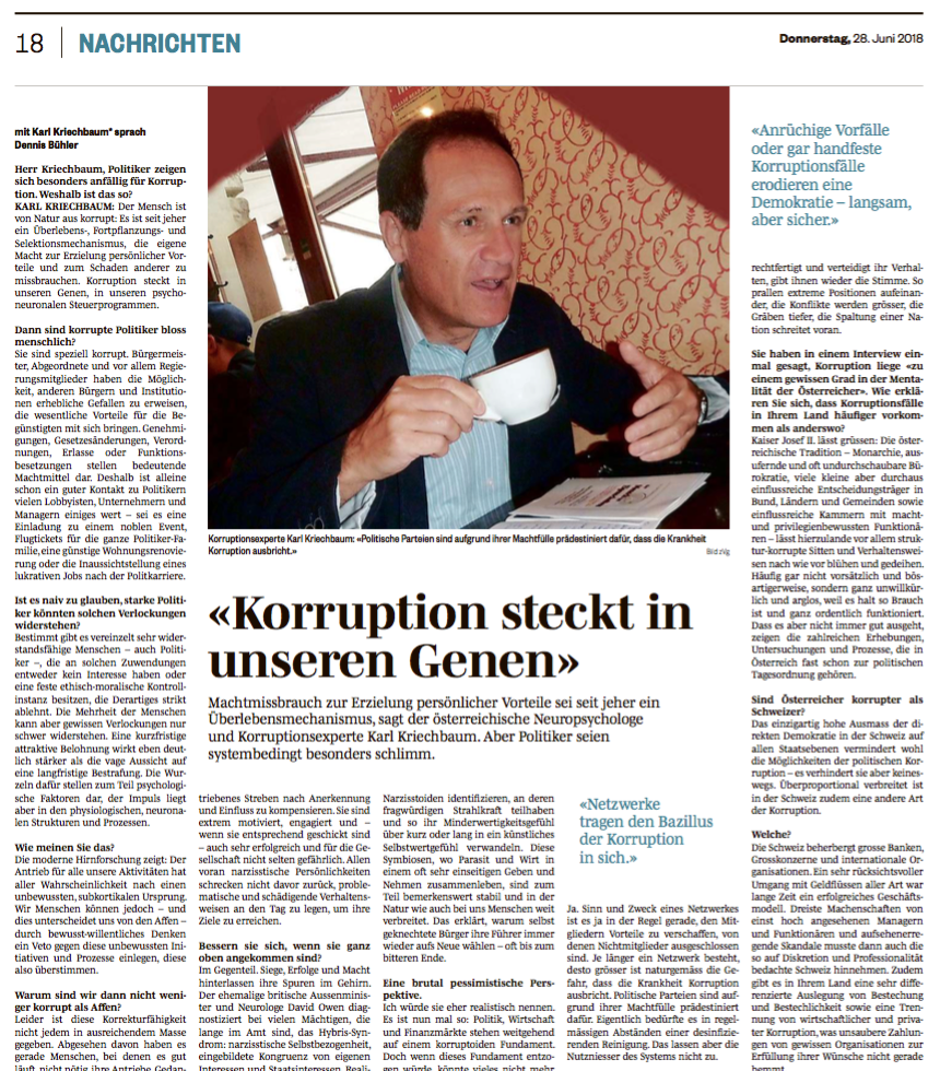 Ein Hintergrundbericht, erschienen am 14. März 2018 in der Südostschweiz, der Aargauer Zeitung / Nordwestschweiz sowie im St. Galler Tagblatt und der Luzerner Zeitung.