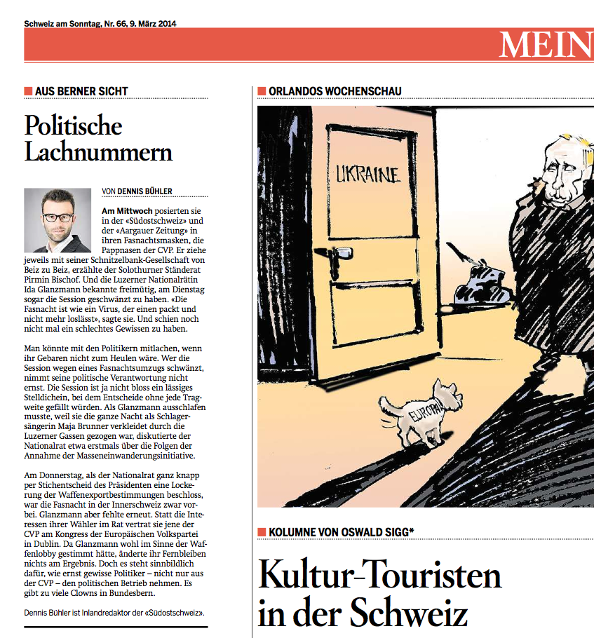 Ein als Kolumne getarnter Kommentar, erschienen am 9. März 2014 in der Schweiz am Sonntag (und tags darauf in der Nordwestschweiz / Aargauer Zeitung).