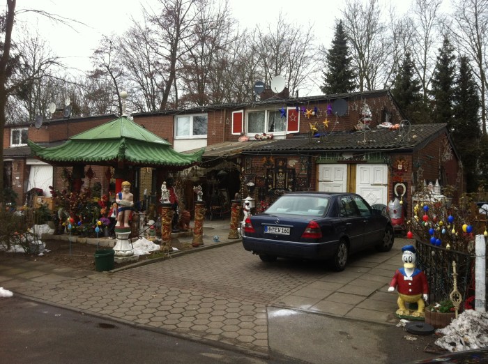 Die Spurensuche führt nach Wilhelmsburg, südlich der Elbe. Sehr ruhig ist es hier, fast schon ländlich, Backsteinromantik. In der Siedlung Niedergeorgswerder Deich leben 500 Sinti in 44 Reihenhäusern. An einem Wegrand steht ein fülliger Mann mit Schnurrbart, lässig an einen schwarzen Mercedes gelehnt. „Wir suchen Herrn Weiß“, sagen wir ein wenig schüchtern. Von dem haben wir gelesen, dass er Schulklassen besucht, um Vorurteile gegen Sinti und Roma abzubauen. Der Mann mit dem teuren Auto lächelt und fragt: „Welchen sucht ihr denn? Hier heißen alle Weiß.“