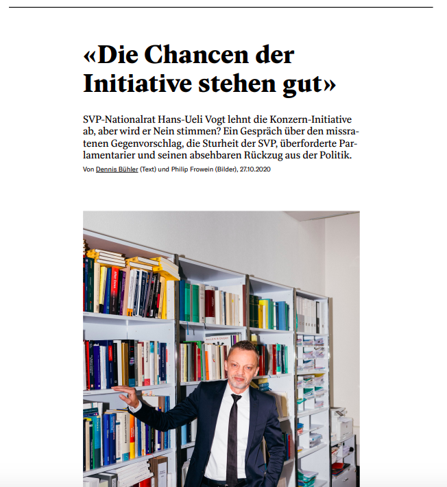 SVP-Nationalrat Hans-Ueli Vogt lehnt die Konzern-Initiative ab, aber wird er Nein stimmen? Ein Gespräch über den missratenen Gegenvorschlag, die Sturheit der SVP, überforderte Parlamentarier und seinen absehbaren Rückzug aus der Politik.