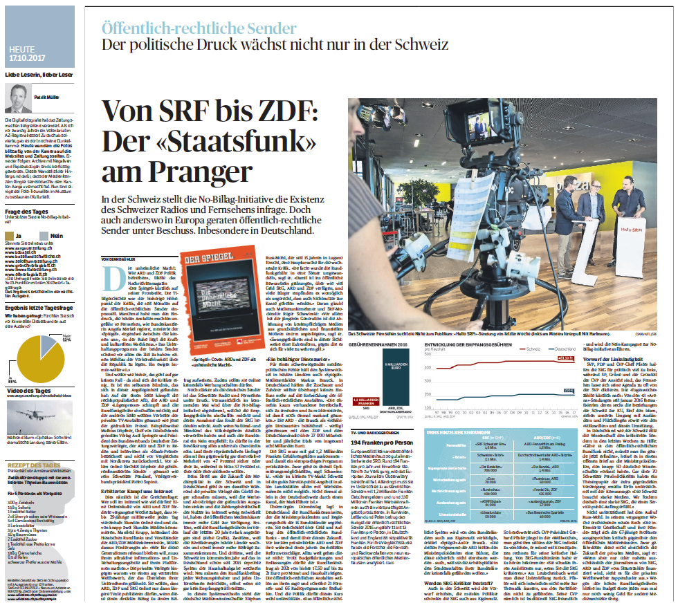 Ein Hintergrundartikel, erschienen am 17. Oktober 2017 in der Südostschweiz sowie der Aargauer Zeitung / Nordwestschweiz.