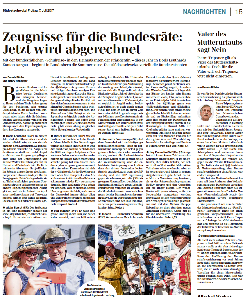 Eine Zeugnisvergabe, geschrieben gemeinsam mit Henry Habegger und erschienen am 7. Juli 2017 in der Südostschweiz sowie der Aargauer Zeitung / Nordwestschweiz.