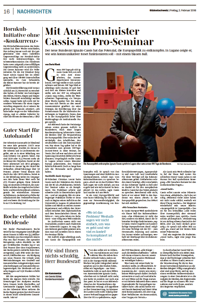 Ein Kommentar, erschienen am 2. Februar 2018 in der Südostschweiz und der Nordwestschweiz / Aargauer Zeitung.