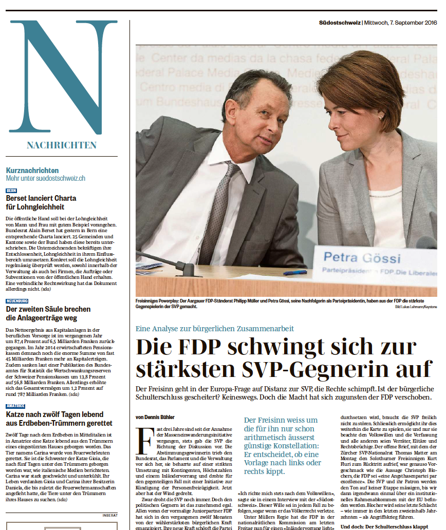 Eine Analyse, erschienen am 7. September 2016 in der Südostschweiz sowie der Nordwestschweiz / Aargauer Zeitung.