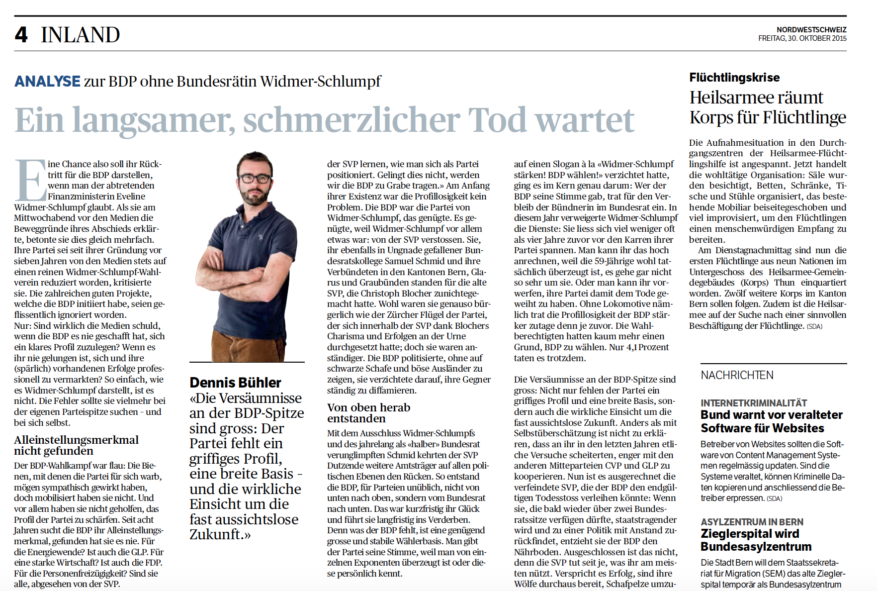 Eine Analyse, erschienen am 29. September 2015 in der Südostschweiz sowie der Nordwestschweiz / Aargauer Zeitung.
