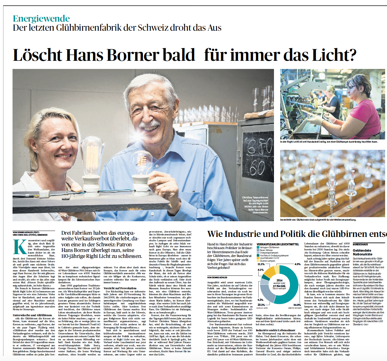 «Als die Glühbirnen die Kerzen ablösten, kam niemand auf die Idee, Kerzen zu verbieten», sagt Borner, der in ein paar Tagen 75-jährig wird. «Glühbirnen aber wurden aus den Verkaufsregalen verbannt, weil die Industrie ein Milliardengeschäft mit Energiesparlampen witterte.» Zwei Drittel der einst 60 Angestellten musste er entlassen, 17 vorwiegend aus Bosnien stammende Mitarbeiter sind ihm geblieben. Einige Hunderttausend Glühbirnen stellen sie jedes Jahr her: von der einst allgegenwärtigen 40-Watt-Glühbirne P64 Deluxe mit ihrer Lebensdauer von 4000 Stunden bis zu komplexen technischen Signallampen für die Schweizerischen Bundesbahnen.