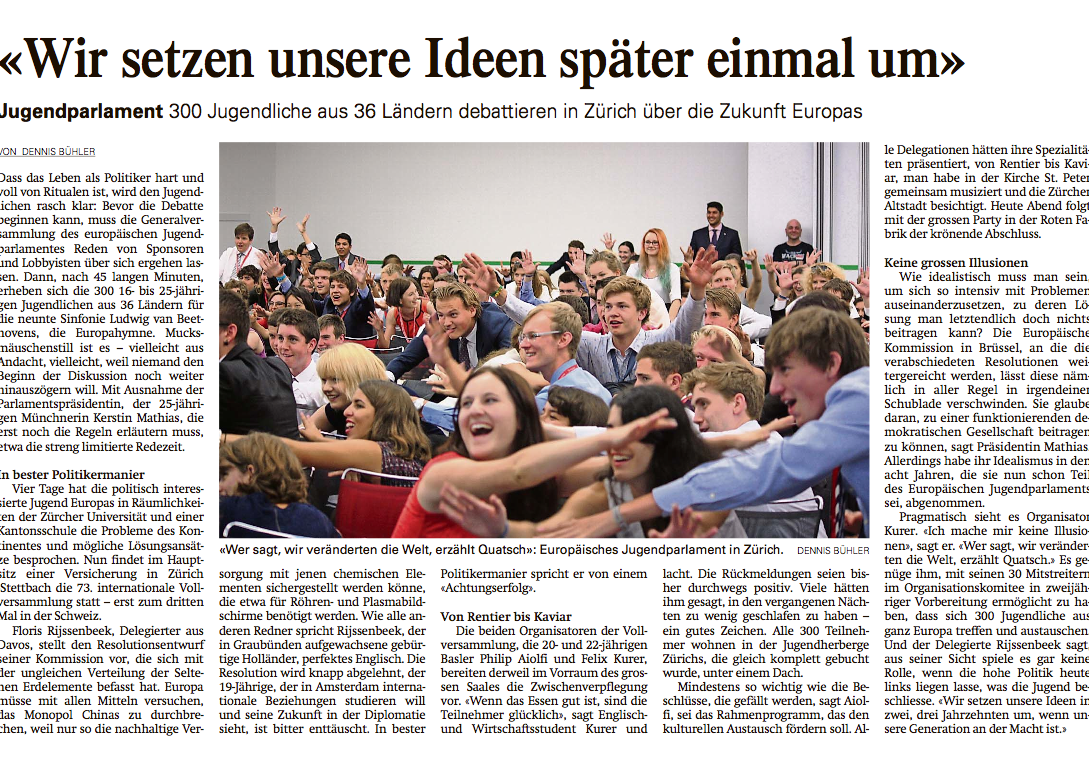 300 Jugendliche aus 36 Ländern debattieren in Zürich über die Zukunft Europas – ein Knochenjob wie bei den Grossen. Probleme lösen will der Nachwuchs, die Welt verändern nicht unbedingt.